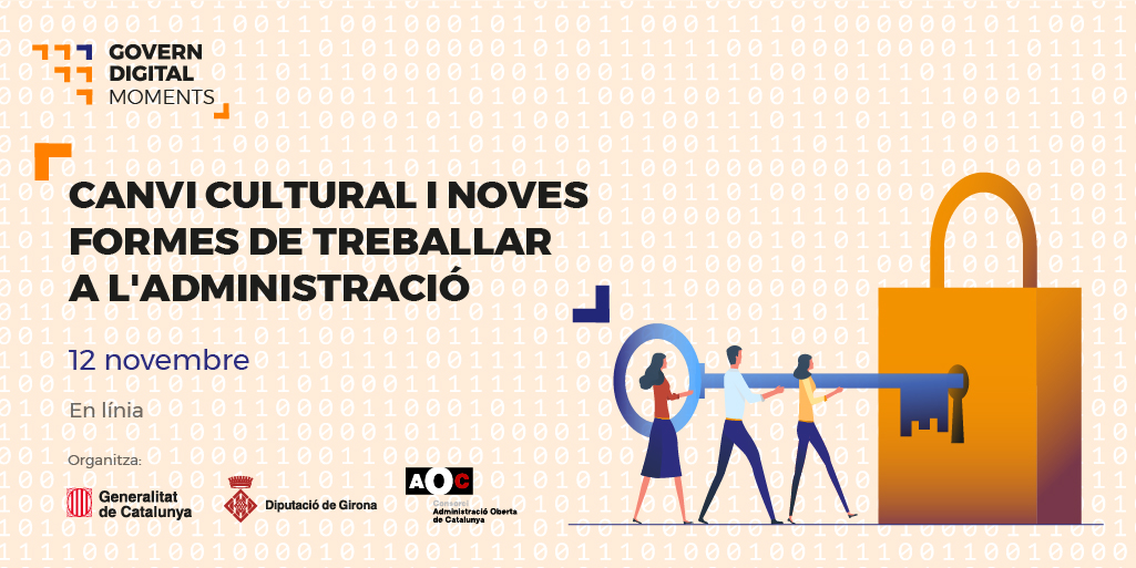 El pròxim 12 de novembre tindrà lloc la segona sessió virtual dels Moments Govern Digital, que tornarà a girar entorn d’un tema d’especial interès arran de la crisi sanitària del coronavirus i les consegüents restriccions de mobilitat i distanciament físic: “Canvi cultural i noves formes de treballar a l’administració“.