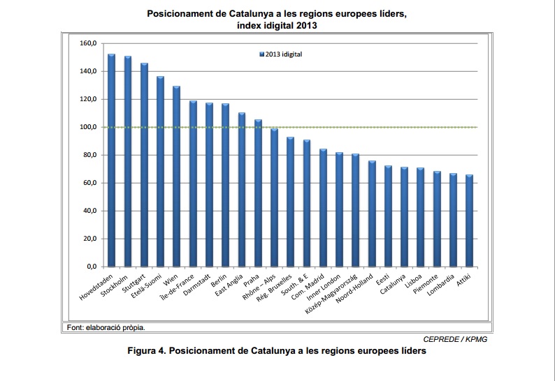 Posicionament de Catalunya a les regions europees, Font: Informe iDigital 2013