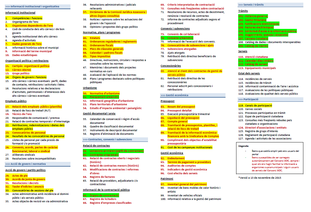 El Portal de Transparència dels ens locals ofereix una doble classificació de la informació