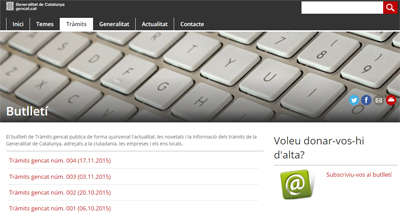 Aquest butlletí es publica quinzenalment i recull l’actualitat, les novetats i la informació relacionada amb els tràmits de la Generalitat adreçats a la ciutadania, les empreses i els ens locals.
