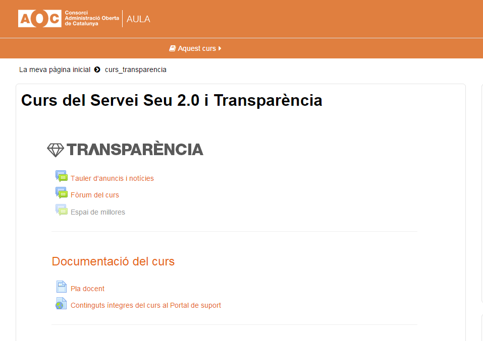 Aquest curs d’auto-aprenentatge, disponible a l’aula virtual del Consorci AOC, permet als seus alumnes, conéixer l’eina de gestió del servei de Seu-e 2.0 i Transparència, realitzar un qüestionari d’auto-avaluació i obtenir un certificat d’aprofitament.