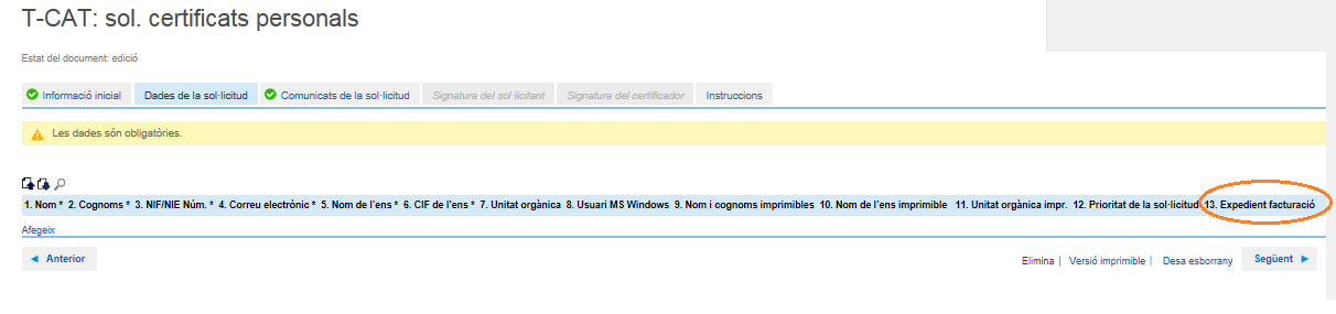 Es tracta d’un camp important si voleu que a la factura aparegui aquest número d’expedient.