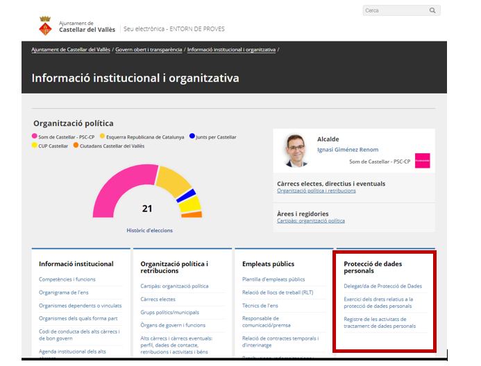Dins de la família “Informació institucional i organitzativa” ara disposeu de la nova subfamília: “Protecció de dades personals”, que inclou tres nous ítems manuals. Concretament: