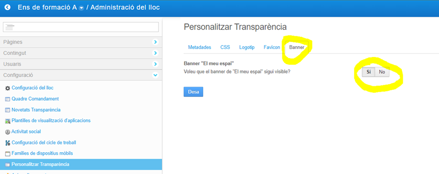 Si un ens no vol disposar del bàner actiu, o no el té activat per defecte i el vol activar es pot gestinar de manera senzilla: