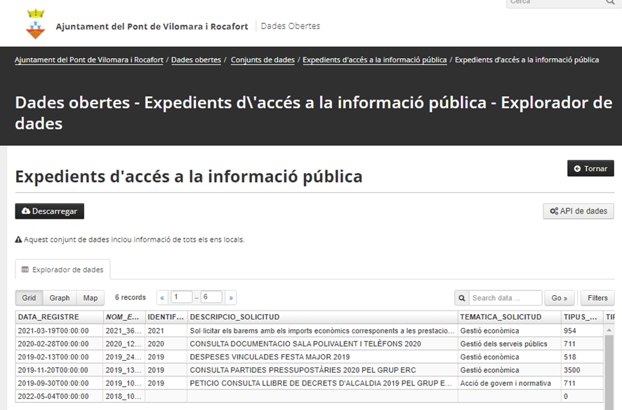 Però també es mostren i publiquen les dades al portal de transparència i dades obertes de l’ens.