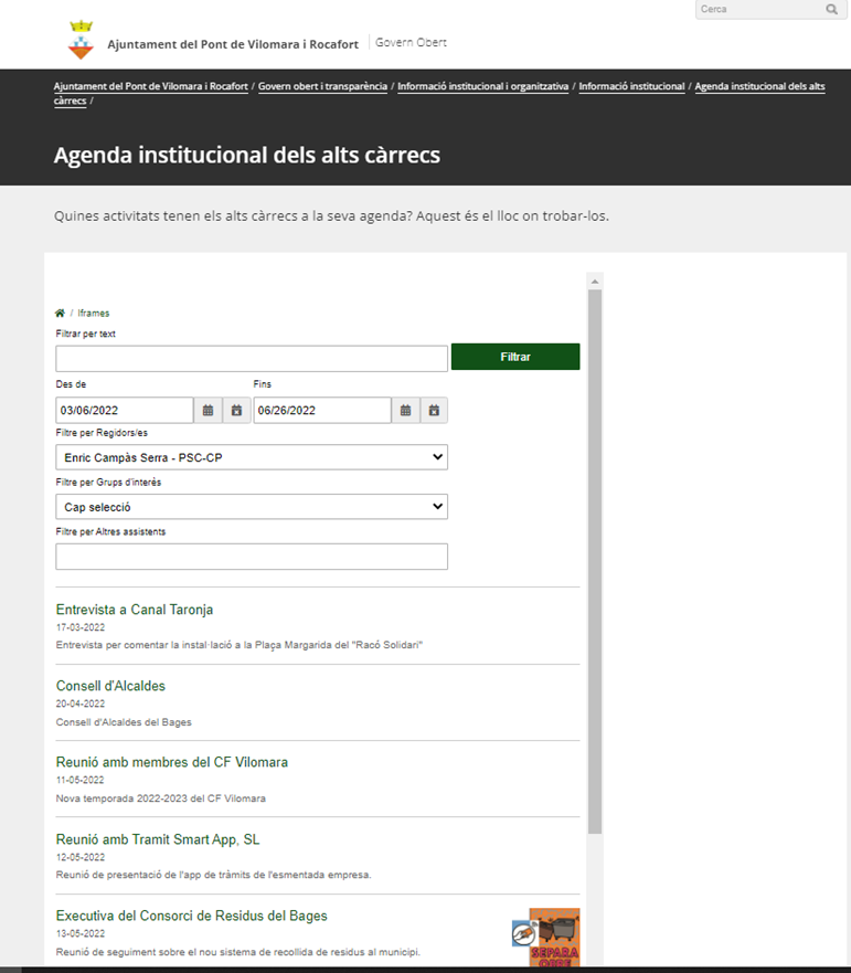 Bona pràctica d’automatització i dades obertes en les agendes dels alts càrrecs municipals
