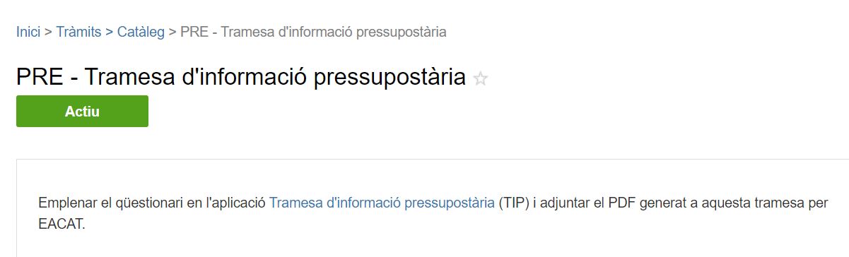 L’imprescindible en la Tramesa d’informació pressupostària: el TIP