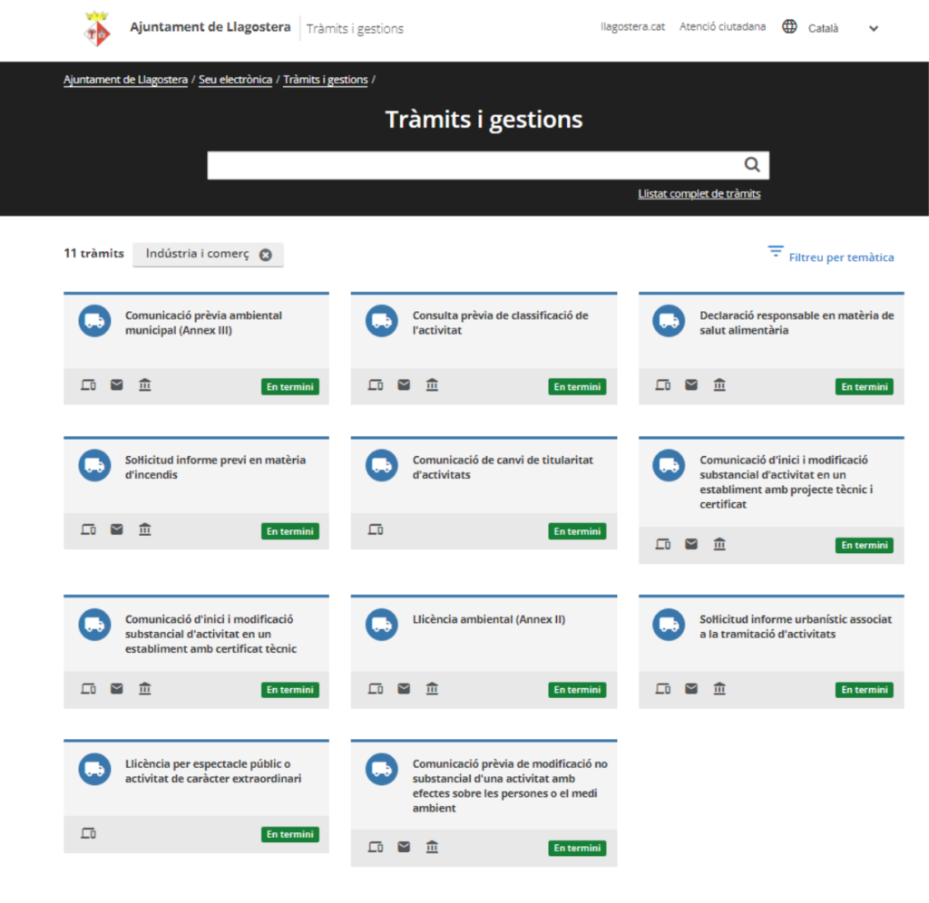 Conjunt de tràmits associats a FUE en el catàleg de l’Ajuntament de Llagostera