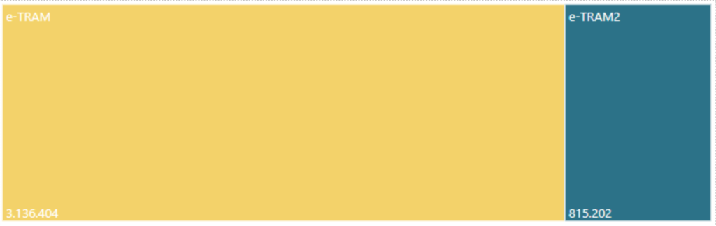 Entre 2022 i 2023 e-TRAM 2.0 acumula ja més de 815.000 tràmits, essent el primer semestre de 2023, amb només e-TRAM 2.0 al territori, el semestre amb més tramitació: més de 450.000 tràmits realitzats, amb una mitjana de 75.000 tràmits mensuals.