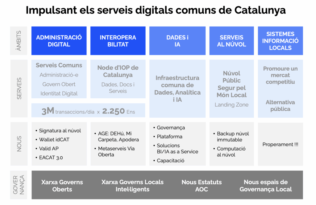 Ha destacat l’adopció i ús actual dels serveis, així com el full de ruta de l’AOC en els diferents àmbits de treball: administració digital, interoperabilitat, dades i intel·ligència artificial, serveis al núvol i sistemes d’informació locals.