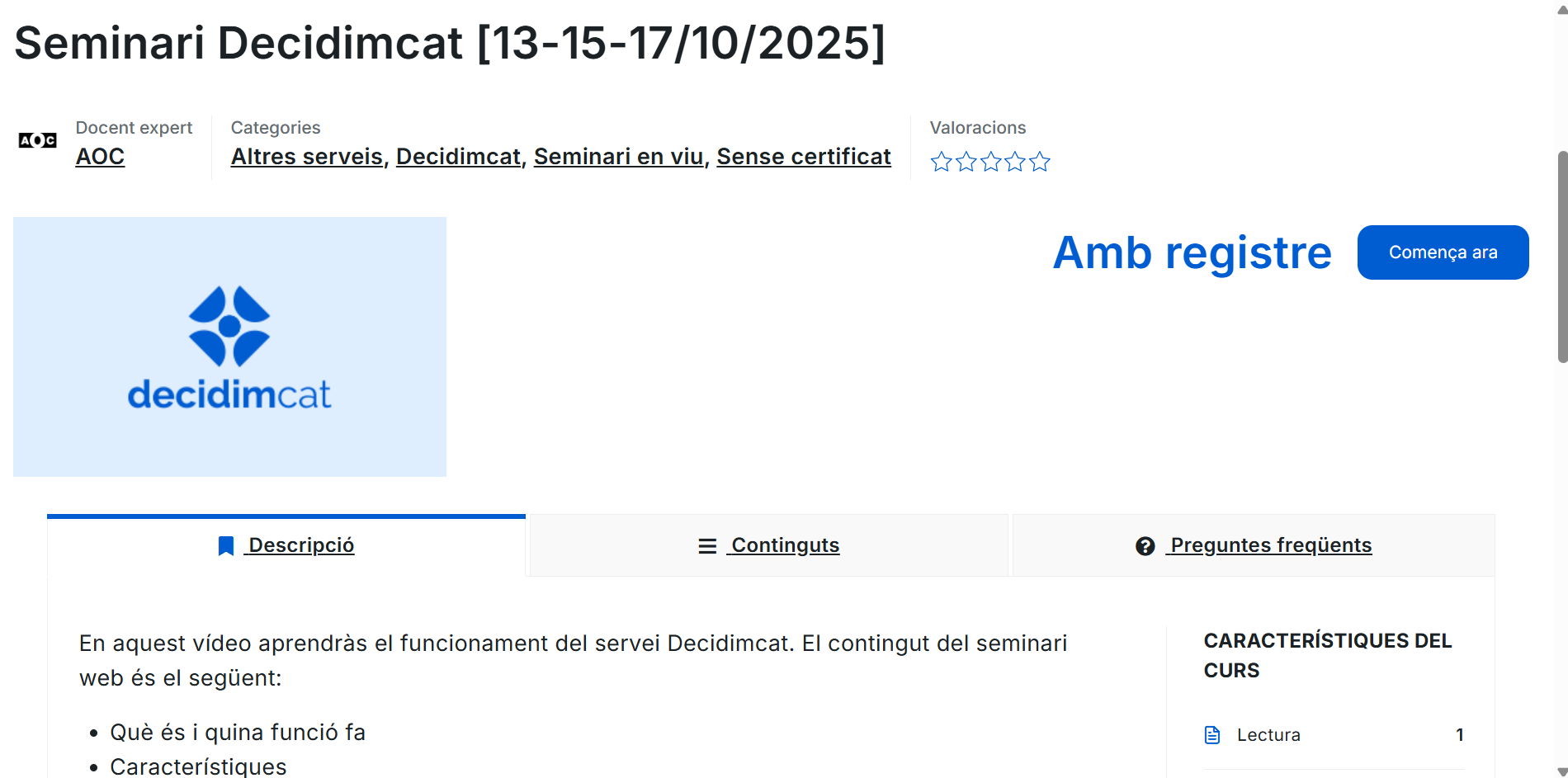Encara sou a temps per inscriure-us a la propera formació del servei i que trobareu a l’apartat “Registra’t” del Campus AOC. Heu de seleccionar l’opció per servei i escollir la data de la convocatòria.