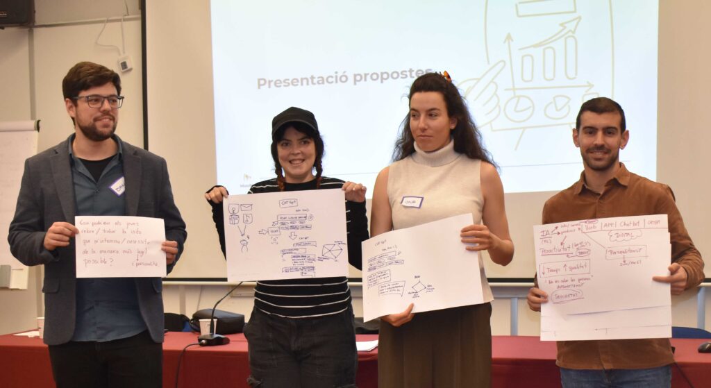 Els equips van detallar tres solucions en prototips que responen a reptes previament identificats. Els citem a mode il·lustratiu: