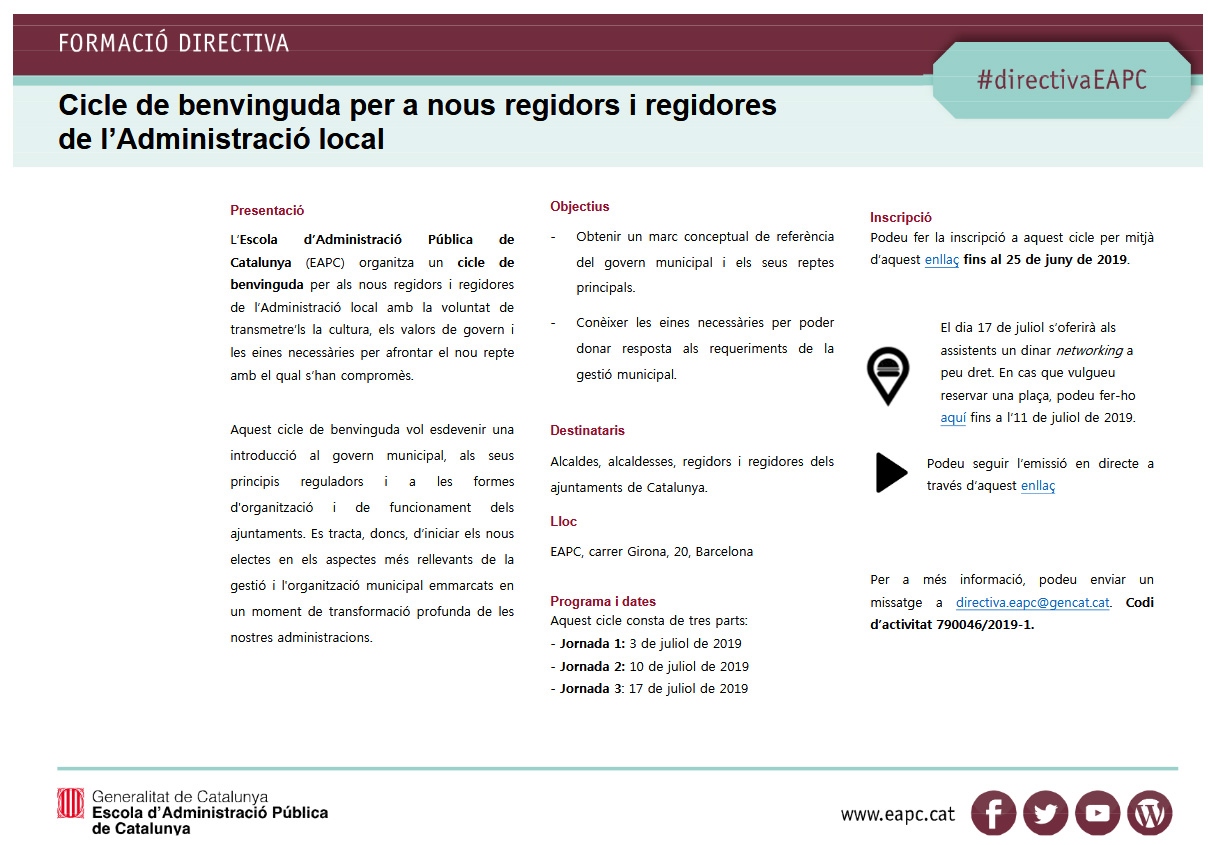 Els materials del “Cicle de benvinguda per als nous regidors i regidores de l’Administració local” ja estan disponibles