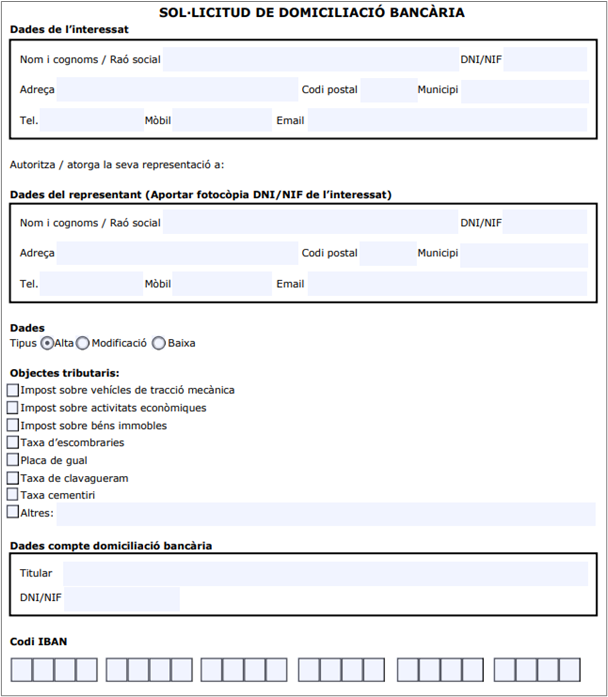 Publicació de formularis en format Word o PDF per a la seva presentació en paper de forma presencial, tot i que Etram ja permet descarregar la versió en Word del tràmit en línia, per la seva presentació en presencial.