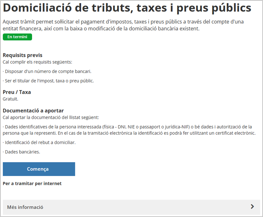 - Mostra el catàleg de tràmits en un lloc destacat i fàcil d’identificar.